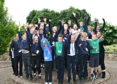 20130907-085625.jpgPupils of Grenoside Primary School come together for a group photo in the court yard at Huthwaite International’s headquaters.