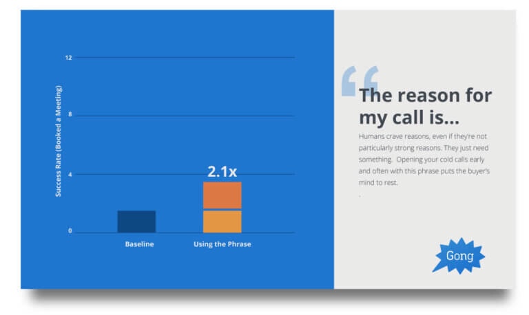 Beginning with a proactive reason for your call increases your success rate by 2.1X: