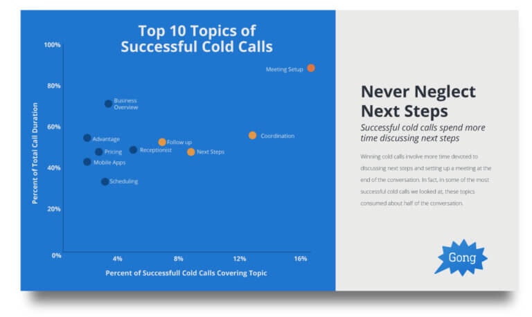 In fact, in some of the most successful cold calls we looked at, “Next Steps” consumed about half of the conversation.