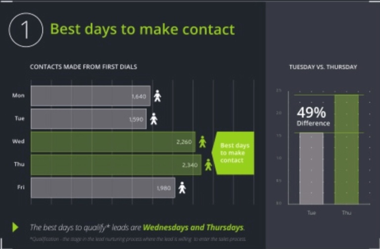 According to InsideSales.com, Wednesday and Thursday are (and have been for years) the best days of the week to call prospects: